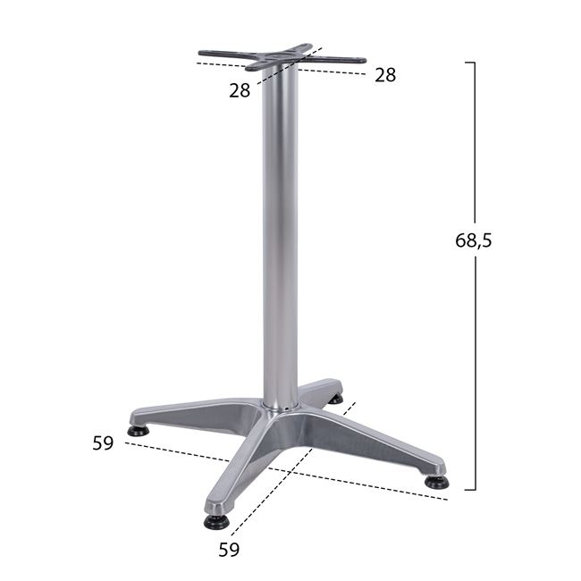 Βάση τραπεζιού τετράνυχη FB9447 κατασκευασμένη από αλουμίνιο σε απόχρωση χρωμίου, με ρεγουλατόρους.