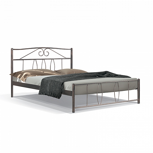 Το κρεβάτι FB9576.01 είναι ένα μεταλλικό κρεβάτι σε ΜΑΥΡΟ χρώμα και σε διάσταση διπλού στρώματος. Το ψηλό κεφαλάρι και το ελαφρώς κοντύτερο ποδαρικό (δηλαδή το κάτω μέρος απέναντι από το κεφαλάρι) φέρουν καλαίσθητα σχέδια από μέταλλο και αισθητικά είναι σίγουρο ότι θα τραβήξει τα βλέμματα και θα απογειώσει το υπνοδωμάτιό σας. Τα πόδια του κρεβατιού είναι ψηλά με αποτέλεσμα να υπάρχει αρκετός χώρος από κάτω για να τον χρησιμοποιήσετε όπως θέλετε, ενώ το ποδαρικό φτάνει μέχρι χαμηλά, δίνοντας την εντύπωση ότι πατάει στο έδαφος. Οι τάβλες στήριξης του στρώματος είναι φυσικά και αυτές μεταλλικές.