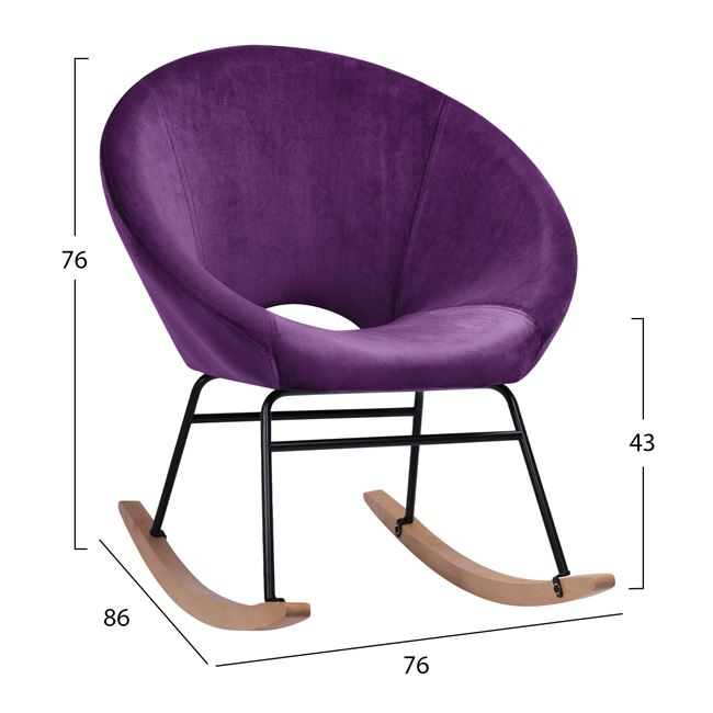 Η κουνιστή πολυθρόνα FB98399.05 είναι ακριβώς αυτό που ονειρεύονται οι περισσότεροι! Μοντέρνα, άνετη και….κουνιστή! Το κυρίαρχο χρώμα είναι το ΜΩΒ, ενώ τα κυρτά πόδια είναι σε φυσικό χρώμα ξύλου. Το κάθισμα της πολυθρόνας είναι σε μορφή φωλιάς αγκαλιάζοντας όμορφα το σώμα, ενώ η σύνδεση του καθίσματος με τα καμπυλωτά ξύλινα πόδια, γίνεται με έναν μαύρο μεταλλικό σκελετό που καταλήγει σε 4 μεταλλικά πόδια. Τι άλλο να ζητήσει κανείς για το καθιστικό ή το σαλόνι του;
