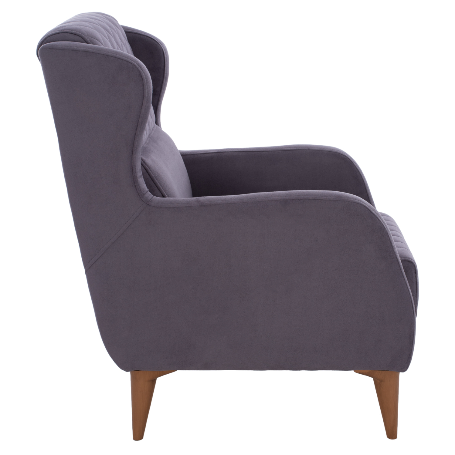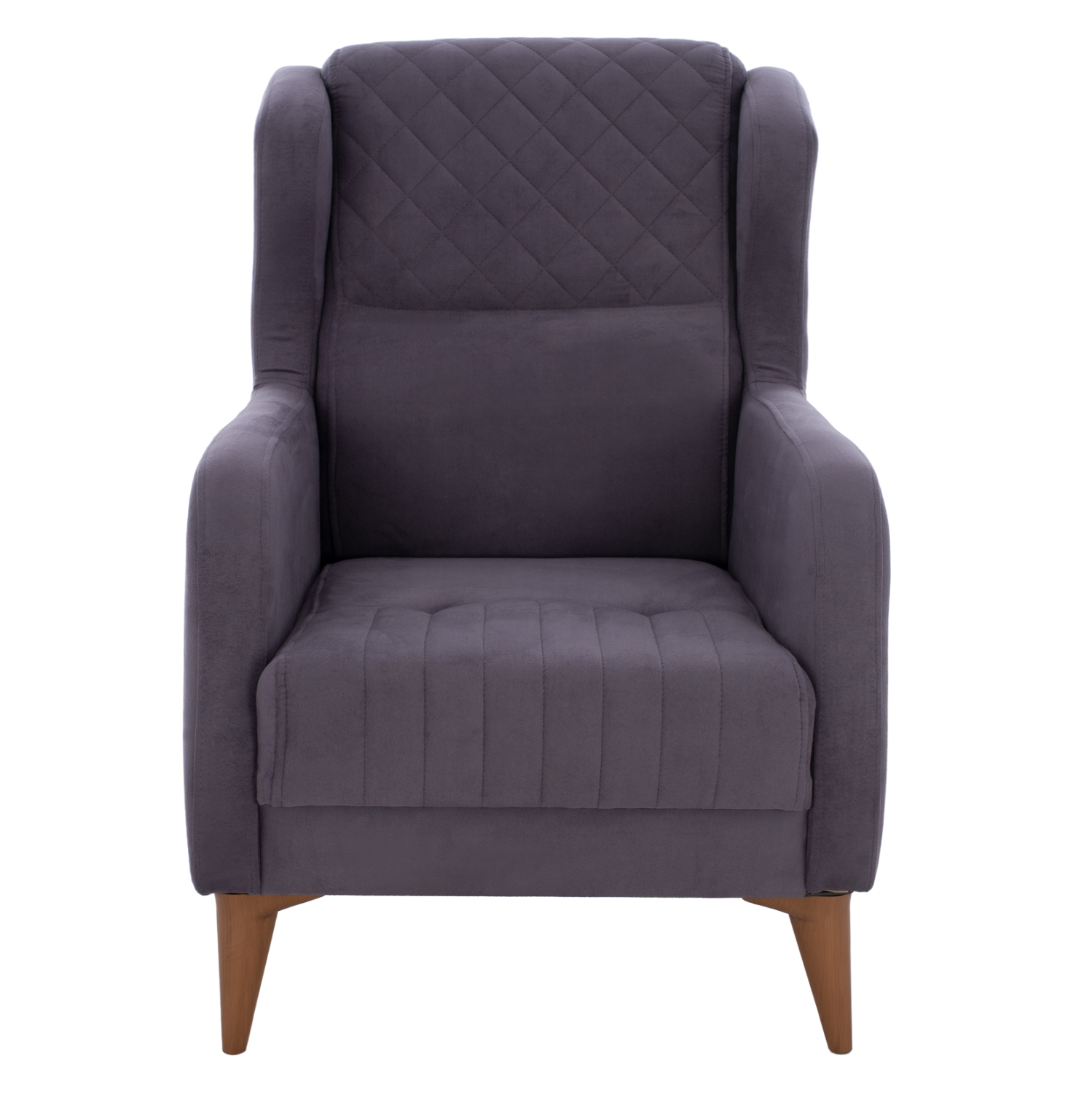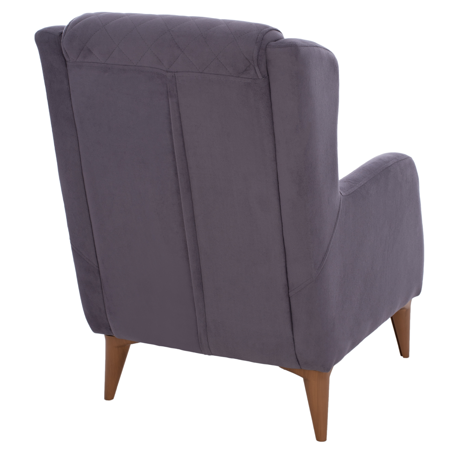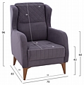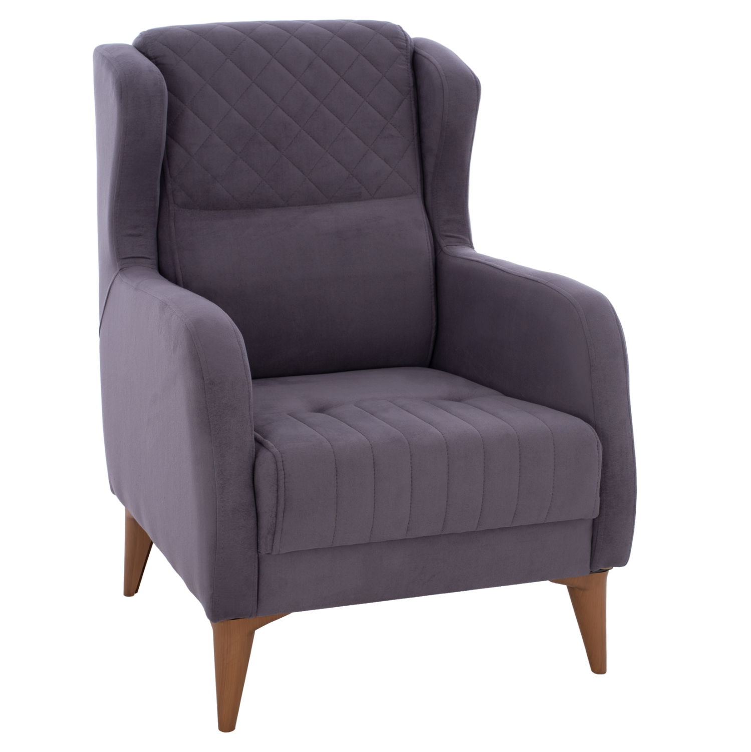 Η πολυθρόνα-μπερζέρα FB99135.01 έχει ουδέτερο σκούρο ΓΚΡΙ χρώμα. Τα πόδια είναι σε καφετί χρώμα ξύλου και το σχέδιό τους είναι λιτό κι απέριττο. Η επένδυση της πλάτης έχει γίνει με τεχνοτροπία καπιτονέ, όπως και το εμπρός μέρος του καθίσματος, που προσδίδει ιδιαίτερη ομορφιά στην μπερζέρα σε συνδυασμό, φυσικά, με το υψηλής ποιότητας βελούδινο ύφασμα. Τα μπράτσα και το κάθισμα είναι ιδιαιτέρως αναπαυτικά ανταποκρινόμενα στον χαρακτήρα της πολυθρόνας.