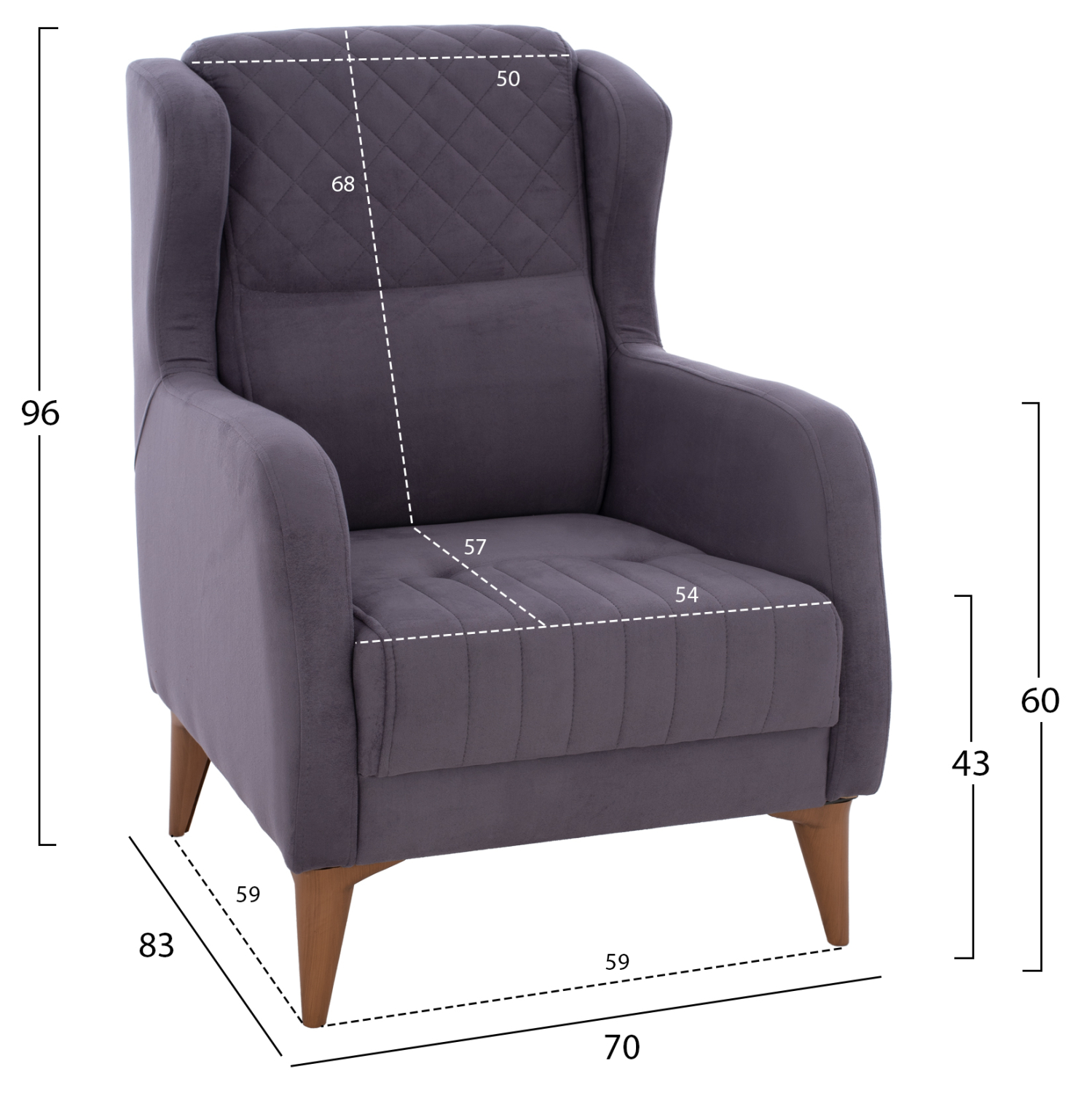 ΠΟΛΥΘΡΟΝΑ ΜΠΕΡΖΕΡΑ FB99135.01 ΣΚΟΥΡΟ ΓΚΡΙ βελούδο 70x83x96 εκ.