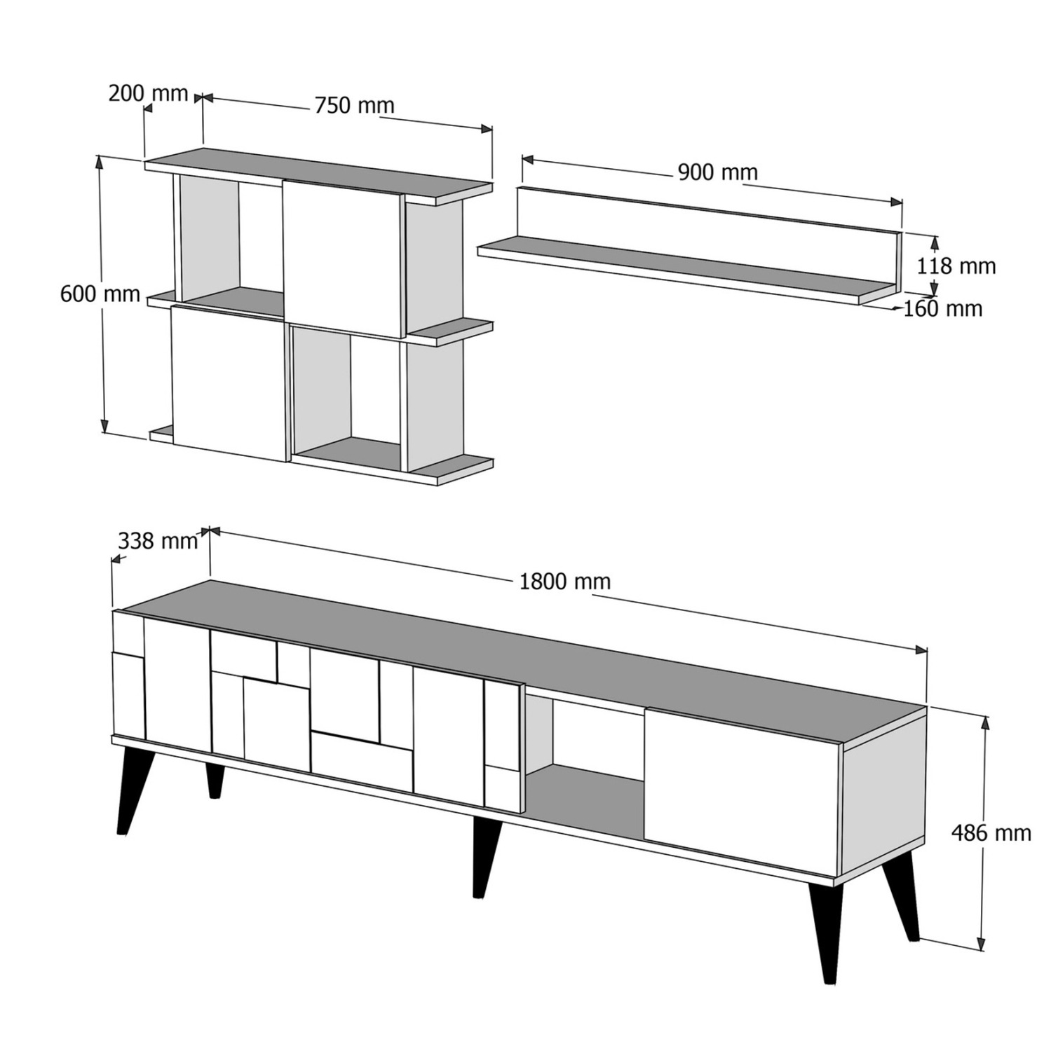 Το FB99437.01 είναι ένα μοντέρνο και λειτουργικό έπιπλο τηλεόρασης, που θα ομορφύνει το σαλόνι σας! Είναι μακρύ και διαθέτει 1 ντουλάπι με ενιαίο χώρο στην αριστερή πλευρά της κύριας μονάδας δαπέδου που ανοίγει προς τα κάτω, έναν ανοιχτό χώρο αποθήκευσης στην μέση καθώς και ένα ακόμα ντουλάπι στην δεξιά πλευρά. Η σύνθεση ολοκληρώνεται με επιτοίχια ράφια και ντουλάπια που δίνουν άπλετο χώρο είτε για την διακόσμηση σας, είτε για αποθήκευση αντικειμένων. Διαθέτει 4 πόδια στην μονάδα δαπέδου και ένα επιπλέον στο κέντρο για μεγαλύτερη στιβαρότητα, ενώ το έπιπλο έρχεται σε μια πανέμορφη διχρωμία καρυδί με ανθρακί, και οι διαστάσεις του είναι κατάλληλες για όλες τις τηλεοράσεις εάν θέλετε η τηλεόρασή σας να στηρίζεται σε βάση. Πρόκειται για μια κομψή και ολοκληρωμένη πρόταση για το σαλόνι σας!