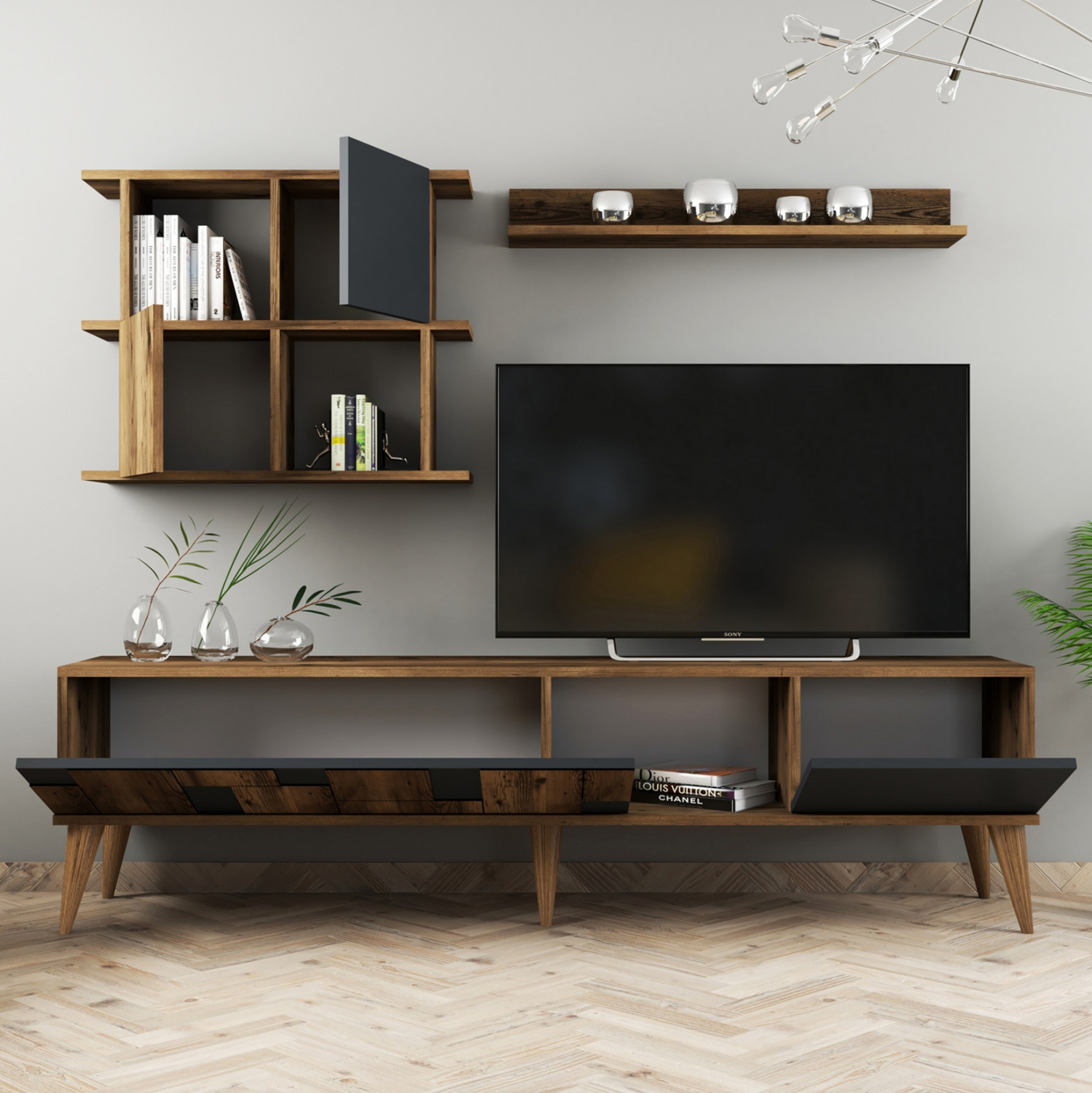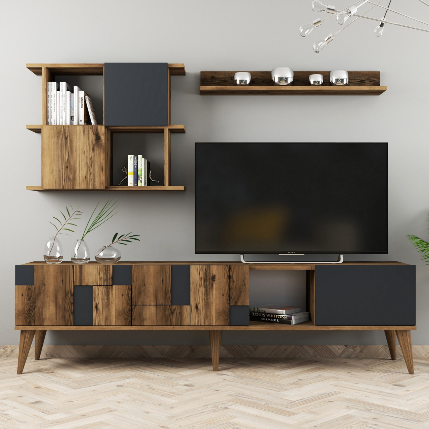 Αυτή η σύνθεση τηλεόρασης είναι όμορφη και φυσικά πρακτική. Διαθέτει μια μεγάλη επιφάνεια και αρκετό χώρο για αποθήκευση διάφορων πραγμάτων. Μπορεί να συνδυαστεί με πολλά στυλ διακόσμησης χάρη στα σκούρα χρώματά της. Μια ιδανική πρόταση για το σπίτι με τιμή που δεν θα σας αφήσει να κοιτάξετε αλλού!