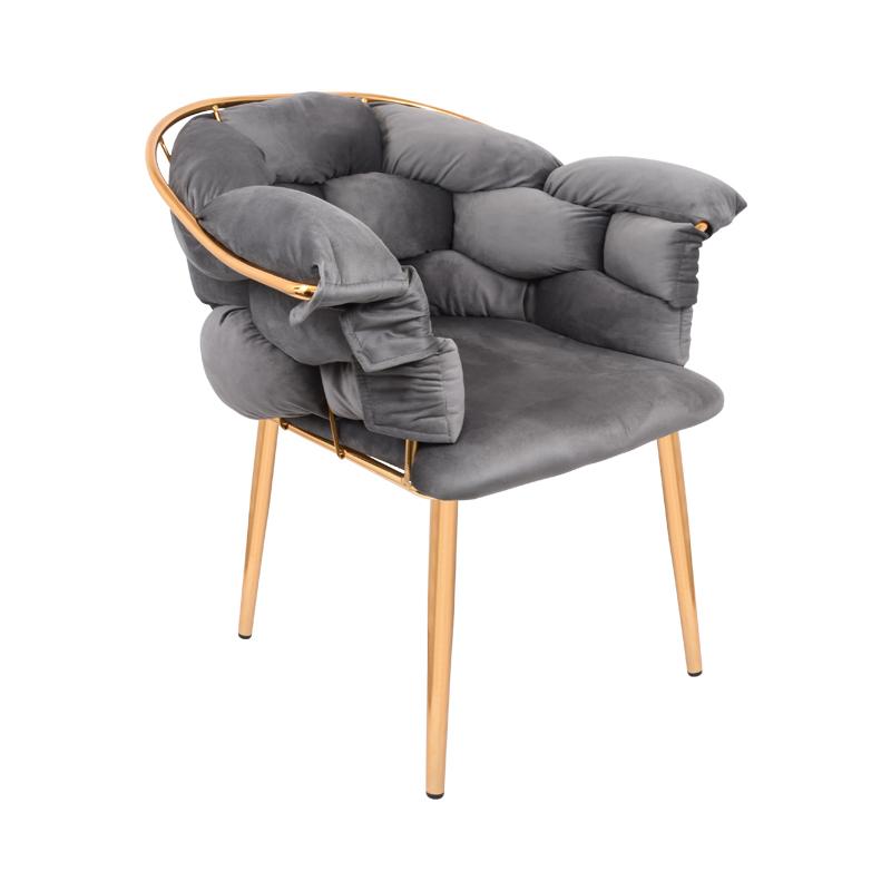 Πολυθρόνες: Το σετ περιλαμβάνει δύο πολυθρόνες που συμπληρώνουν τον καναπέ. Αυτές είναι σχεδιασμένες με την ίδια αισθητική, διαθέτοντας μεταλλικό σκελετό σε χρυσό και επένδυση με γκρί ύφασμα. Οι πολυθρόνες προσφέρουν άνεση και κομψότητα, ενώ το σχέδιό τους συνδυάζεται αρμονικά με τον καναπέ.