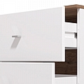 flagstaff oak, λευκό και μελαμίνη με έξτρα επίστρωση γυαλιστερής επιφάνειας πάνω σε MDF.