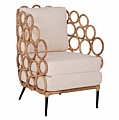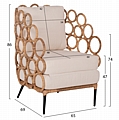 Η πολυθρόνα FB99341 είναι πανέμορφη! Μοντέρνα, άνετη και σταθερή! Το κυρίαρχο χρώμα είναι το ΦΥΣΙΚΟ προς λευκό του ξύλου, ενώ τα 4 πόδια είναι σε μαύρο χρώμα. Το ελαφρώς ημικυκλικό κάθισμα της πολυθρόνας είναι άνετο και διαθέτει μεγάλα μαξιλάρια μέτριας σκληρότητας ενώ η πολυθρόνα δίνει την αίσθηση ότι αγκαλιάζει το σώμα. Αυτό όμως που τραβάει τα βλέμματα σε αυτή την πολυθρόνα είναι ότι η πλάτη με τα μπράτσα αποτελούν μια συνεχόμενη κατασκευή από δεμένους κρίκους από RATTAN, ενώ τα πόδια είναι μεταλλικά σε μαύρο χρώμα ολοκληρώνοντας εμφανισιακά αυτή την υπέροχη πολυθρόνα!