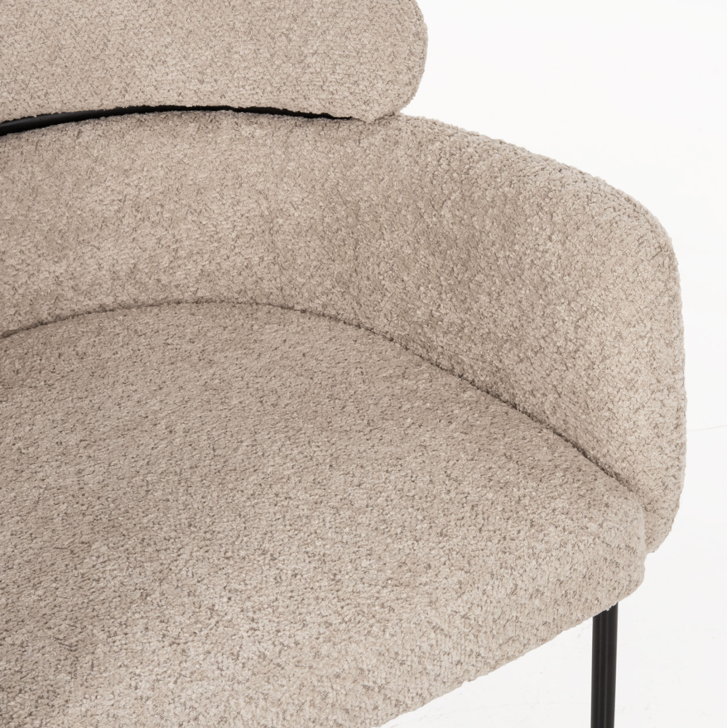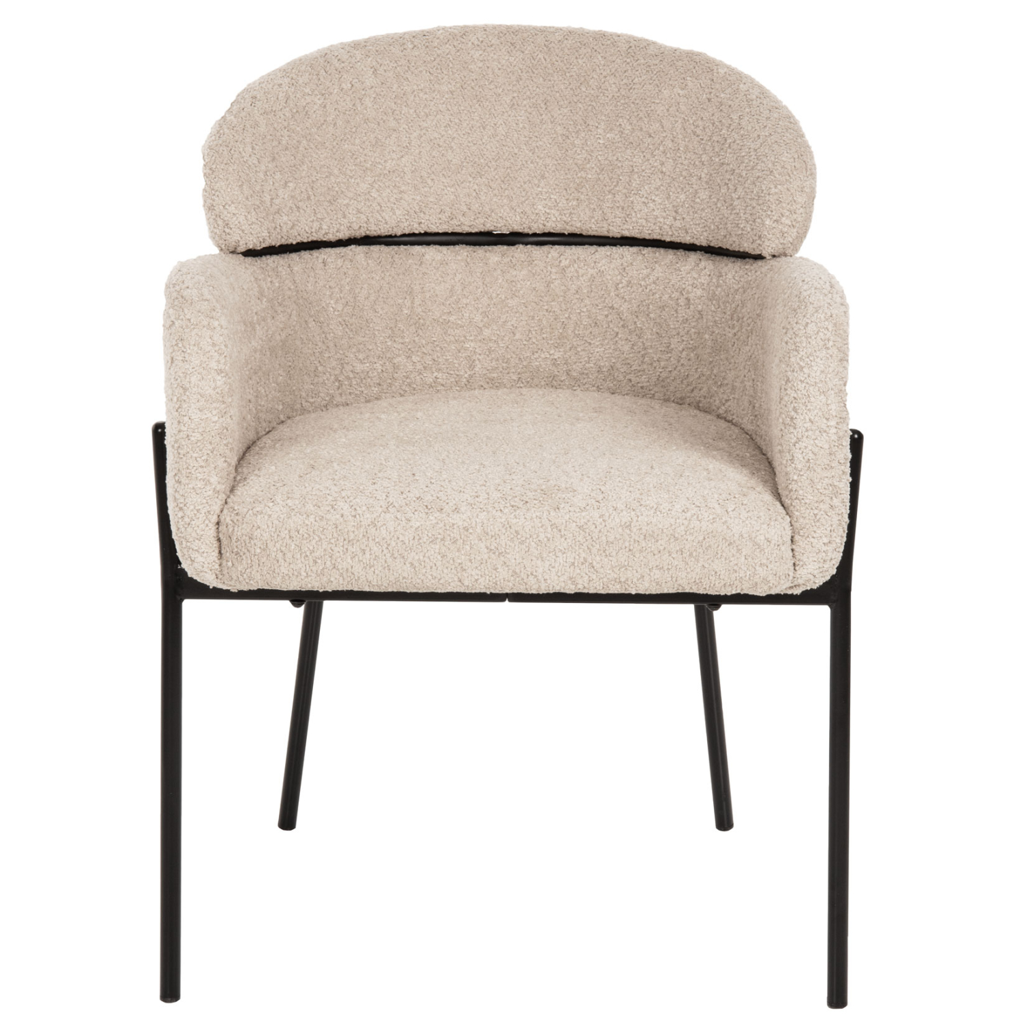 Η πολυθρόνα FB98583.02 είναι μοντέρνα, άνετη και αγκαλιάζει το σώμα! Το κυρίαρχο χρώμα είναι το ΕΚΡΟΥ, ενώ τα 4 πόδια είναι σε μαύρο χρώμα. Η επένδυση της πολυθρόνας έχει γίνει με ζεστό ΜΠΟΥΚΛΕ ύφασμα που θα δώσει μια διαφορετική όψη στον χώρο σας. Πρόκειται για μια πρόταση όμορφη, κυρίως για την τραπεζαρία σας, αλλά και που θα ταιριάξει σχεδόν παντού!