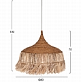 FB97755- Kρεμαστό φωτιστικό---- Αν επιθυμείτε να διακοσμήσετε το χώρο σας με ένα φωτιστικό σε boho στυλ, αυτό είναι η πιο σωστή επιλογή. Είναι ένα μονόφωτο φωτιστικό για επαγγελματική χρήση, με «καπέλο» σε σχήμα καμπάνας φτιαγμένο από σκοινί, υψηλής ποιότητας και αντοχής στο χρόνο. Το ιδιαίτερο χαρακτηριστικό, όμως, αυτού του φωτιστικού είναι ότι το «καπέλο» στο μεγαλύτερο μέρος του αποτελείται από κρόσια, επιτείνοντας ακόμα περισσότερο το boho στυλ.