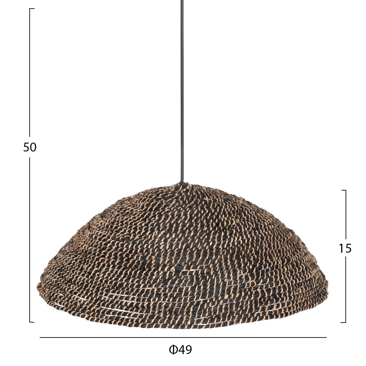 FB97783- Kρεμαστό φωτιστικό---- Αν επιθυμείτε να διακοσμήσετε το χώρο σας με ένα φωτιστικό σε boho στυλ, αυτό είναι η πιο σωστή επιλογή. Είναι ένα μονόφωτο φωτιστικό και για επαγγελματική χρήση, με φαρδύ «καπέλο» σε ανοιχτό σχήμα και μαύρο χρώμα, φτιαγμένο από σκοινί, υψηλής ποιότητας και αντοχής στο χρόνο.