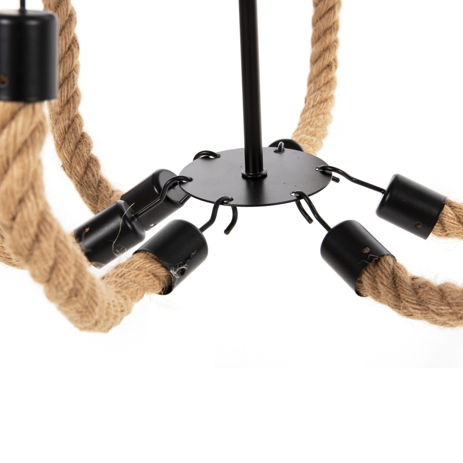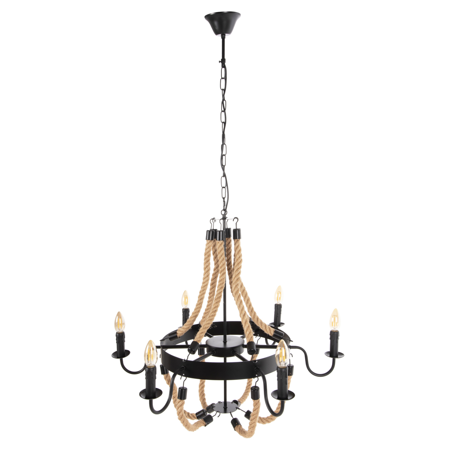 Το πολύφωτο FB94177 είναι μια ακόμα εντυπωσιακή προσθήκη στην γκάμα μας. Ο μαύρος μεταλλικός σκελετός του είναι κυκλικός και κρέμεται με αλυσίδα από την οροφή. Στον κυκλικό σκελετό είναι μονταρισμένα τα 6 φώτα σε μορφή κηροπηγίων, ενώ την εικόνα συμπληρώνουν τα σχοινιά που δίνουν την αίσθηση πολυελαίου στο φωτιστικό. Αυτό το πολύφωτο θα φωτίσει με άπλετο φως μεγάλους χώρους και θα εντυπωσιάσει με το όμορφο design του.