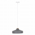 Ανακαλύψτε αυτό το νέο μας κρεμαστό φωτιστικό οροφής και ολοκληρώστε την διακόσμησή σας. Πρόκειται για ένα φωτιστικό με ΓΚΡΙ ρηχό μεταλλικό καπέλο σε σχήμα καμπάνας με λεπτομέρεια ξύλου στην κορυφή του φωτιστικού. Αισθητικά, ολοκληρώνεται με το λευκό καλώδιο κρέμασης και την λευκή βάση οροφής, και αποτελεί την τελευταία τάση στα φωτιστικά οροφής.