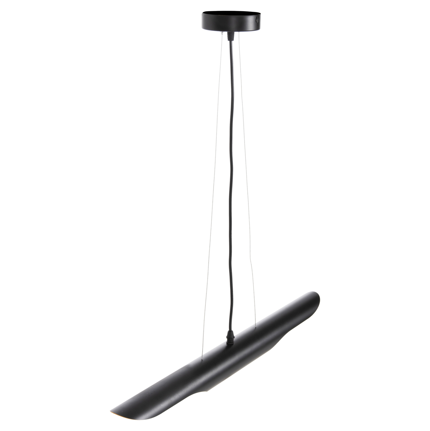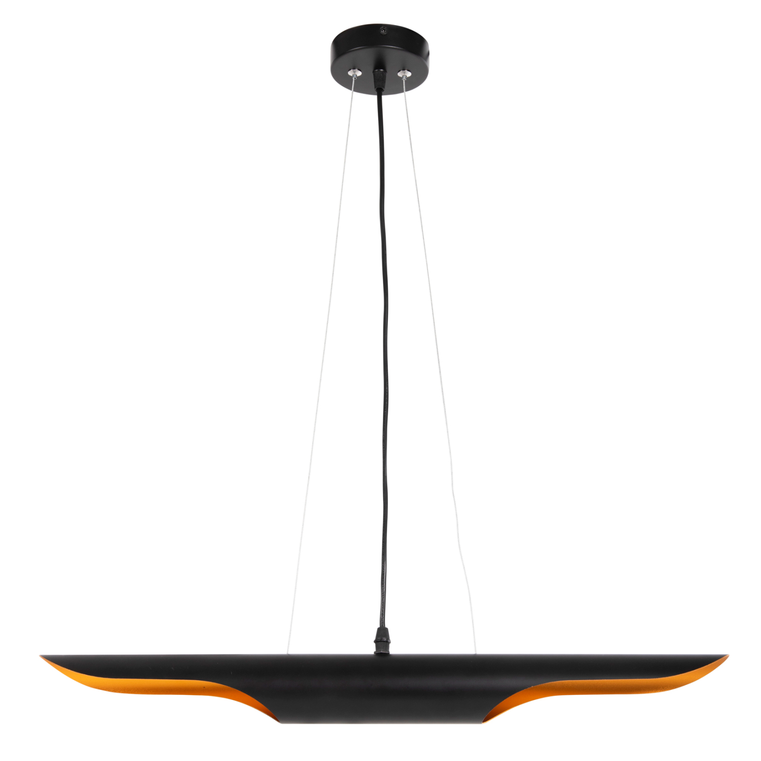 Το FB94172 είναι μια από τις καινούργιες προσθήκες στην γκάμα μας. Το κρεμαστό αυτό φωτιστικό είναι ένας μαύρος σωλήνας κρεμασμένος με 2 ασημί σύρματα από την οροφή. Παίρνει 2 λάμπες στις δύο πλευρές του σωλήνα, ενώ το εσωτερικό είναι σε πορτοκαλί χρώμα δίνοντας μια όμορφη εικόνα στον χώρο.