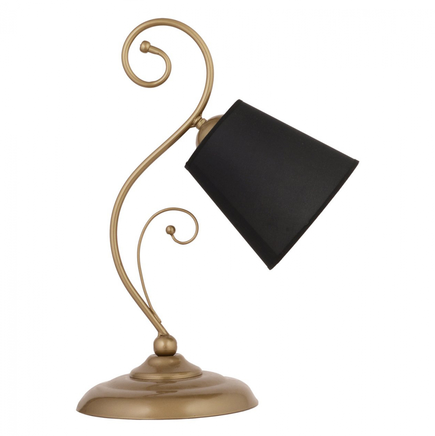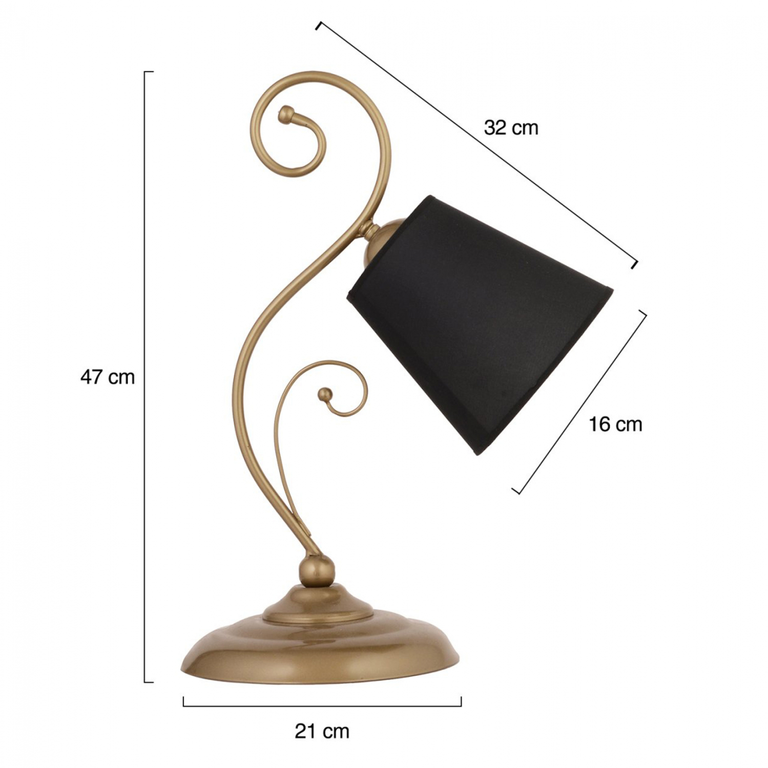 Επιτραπέζιο φωτιστικό, χρυσή απόχρωση με μαύρο καπέλο.