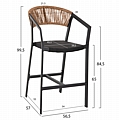 Η πλάτη του σκαμπό είναι επενδυμένη με πολυεστερικό RATTAN. Στα περισσότερα έπιπλα κήπου και γενικά σε έπιπλα για εξωτερικούς χώρους χρησιμοποιείται συνθετικό υλικό από PVC, δηλαδή τεχνητές ίνες υψηλής ποιότητας. Αυτό δίνει στην κατασκευή εξαιρετική αντοχή και ανθεκτικότητα σε ακραίες συνθήκες ζέστης ή κρύου.
