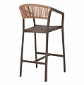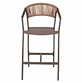 Η πλάτη του σκαμπό είναι επενδυμένη με πολυεστερικό RATTAN. Στα περισσότερα έπιπλα κήπου και γενικά σε έπιπλα για εξωτερικούς χώρους χρησιμοποιείται συνθετικό υλικό από PVC, δηλαδή τεχνητές ίνες υψηλής ποιότητας. Αυτό δίνει στην κατασκευή εξαιρετική αντοχή και ανθεκτικότητα σε ακραίες συνθήκες ζέστης ή κρύου.