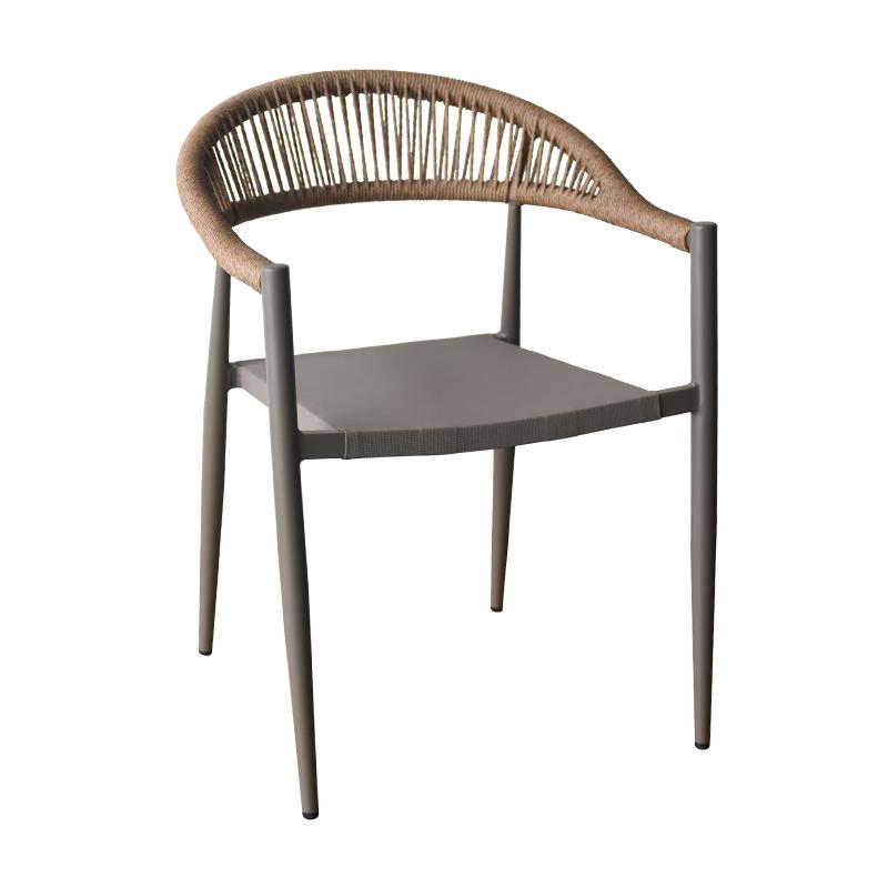 Σκελετός από Αλουμίνιο: Ο σκελετός της καρέκλας είναι κατασκευασμένος από ελαφρύ και ανθεκτικό αλουμίνιο, το οποίο δεν σκουριάζει και προσφέρει σταθερότητα και αντοχή, καθιστώντας την κατάλληλη για εξωτερική χρήση. Το αλουμίνιο είναι επικαλυμμένο με ηλεκτροστατική βαφή για επιπλέον προστασία από τη φθορά και τις καιρικές συνθήκες.