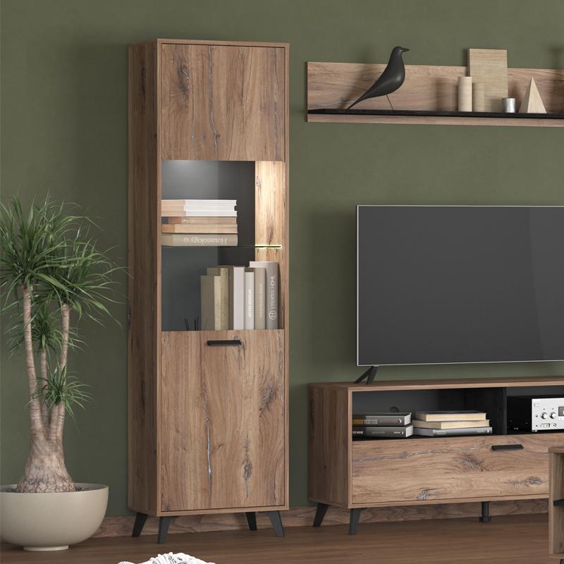 Για αρμονικό αποτέλεσμα προτείνουμε να συνδυαστεί με τα υπόλοιπα κομμάτια της συλλογής Umbria χρώματος grey oak. Αποτελείται από έπιπλο τηλεόρασης, ράφι τοίχου, βιτρίνα, τραπέζι σαλονιού, κομότα και ντουλάπι.