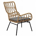 Πολυθρόνα Naoki pakoworld μέταλλο μαύρο-pe φυσικό-μαξιλάρι