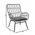 Πολυθρόνα Naoki pakoworld μέταλλο μαύρο-pe φυσικό-μαξιλάρι γκρι