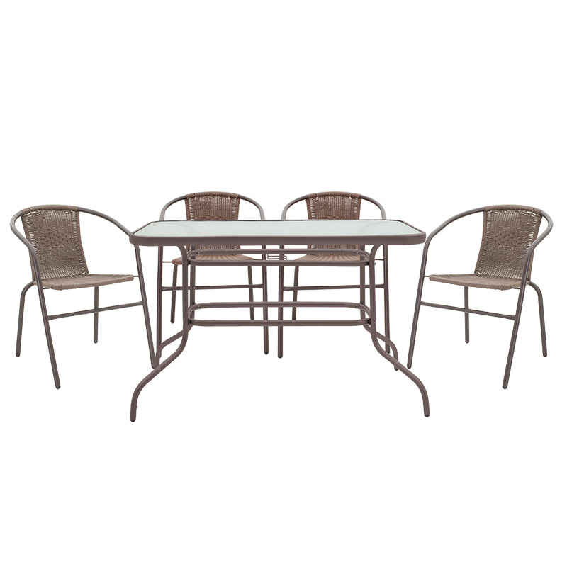 Τραπεζαρία Valor-Obbi σετ 5τεμ pakoworld pe καφέ-μέταλλο 110x60x70εκ