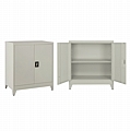Η FB911980 είναι μια πρακτικότατη κοντή μεταλλική ντουλάπα με πόδια, που έχει φτιαχτεί με γνώμονα την χωρητικότητα για το μέγεθός της και την ανθεκτικότητα. Είναι δίφυλλη με τις δύο πόρτες να κλείνουν ακριβώς στην μέση της κατασκευής, ενώ το εσωτερικό είναι ένας ενιαίος χώρος χωρίς κάθετα χωρίσματα. Διαθέτει 1 ράφι που δημιουργεί 2 αποθηκευτικούς χώρους. Οι πόρτες διαθέτουν κλειδαριά που κλειδώνει με κλειδί, ενώ το χρώμα της ντουλάπας είναι πολύ ανοιχτό γκρι.