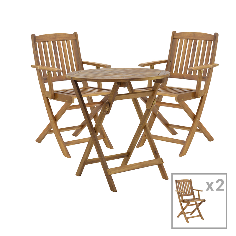 Τραπεζαρία Recofly-Carpuva pakoworld σετ 3τεμ πτυσσόμενο φυσικό μασίφ ξύλο ακακίας Φ70x74εκ