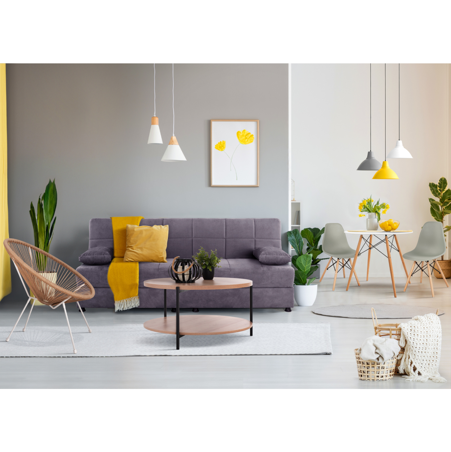Στρογγυλό τραπεζάκι σαλονιού με 2 επίπεδα. Μελαμίνη-μέταλλο σε sonama και μαύρο χρώμα. Διαστάσεις: Φ75x40,5Υ εκ.