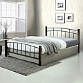 Κρεβάτι διπλό Mandy pakoworld ξύλο σε καρυδί απόχρωση-μαύρο μέταλλο 140x190εκ