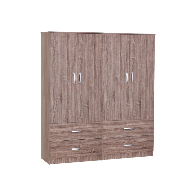 - Περιλαμβάνει τέσσερις μεγάλες πόρτες, εσωτερικά φέρει ράγα για κρεμάστρες και κάτω δύο μεγάλα συρτάρια για την αποθήκευση ρούχων και αξεσουάρ.