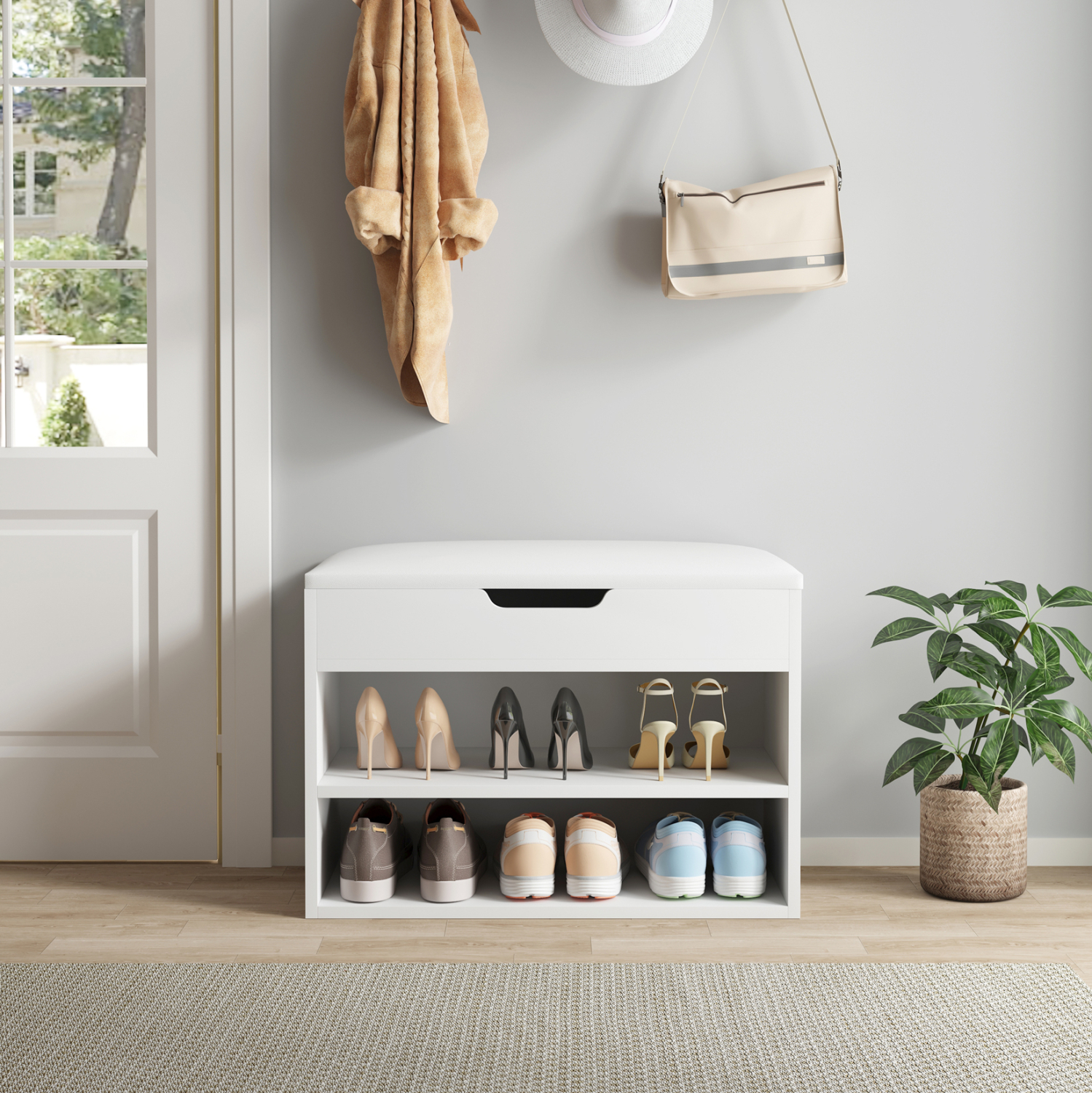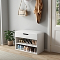 Σας αρέσει να είστε τακτοποιημένοι και καθαροί; Σας παρουσιάζουμε την παπουτσοθήκη μελαμίνης FB92477.03 σε ΛΕΥΚΟ χρώμα με πολύ χαμηλά μεταλλικά πόδια. Ένα έπιπλο που εκτός από χώρο αποθήκευσης παπουτσιών, διαθέτει και κάθισμα επενδυμένο με PU leather σε ΛΕΥΚΟ χρώμα, για να φοράτε τα παπούτσια σας καθιστοί. Ο χώρος αποθήκευσης είναι ανοιχτός με 2 επίπεδα, ενώ κάτω από το κάθισμα που ανασηκώνεται υπάρχει ακόμα ένας, πιο ρηχός, χώρος αποθήκευσης αντικειμένων. Σκοπός μας είναι να σας βοηθήσουμε να οργανώσετε και να βελτιώσετε με τον καλύτερο δυνατό τρόπο την λειτουργικότητα του σπιτιού σας.