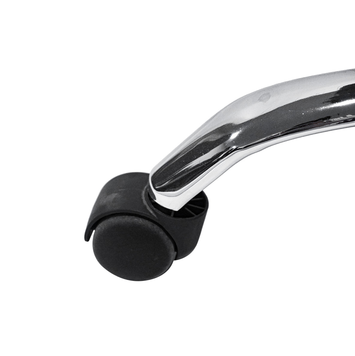 Τέλος, τα πόδια καταλήγουν στους μαύρους τροχίσκους 2 ιντσών της καρέκλας που είναι επίσης από ειδικό υλικό πολυουρεθάνης για αθόρυβη κύλιση.