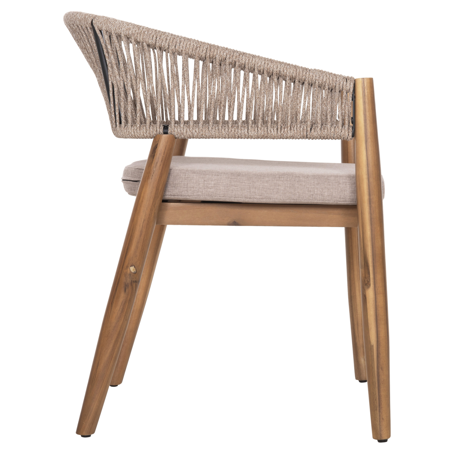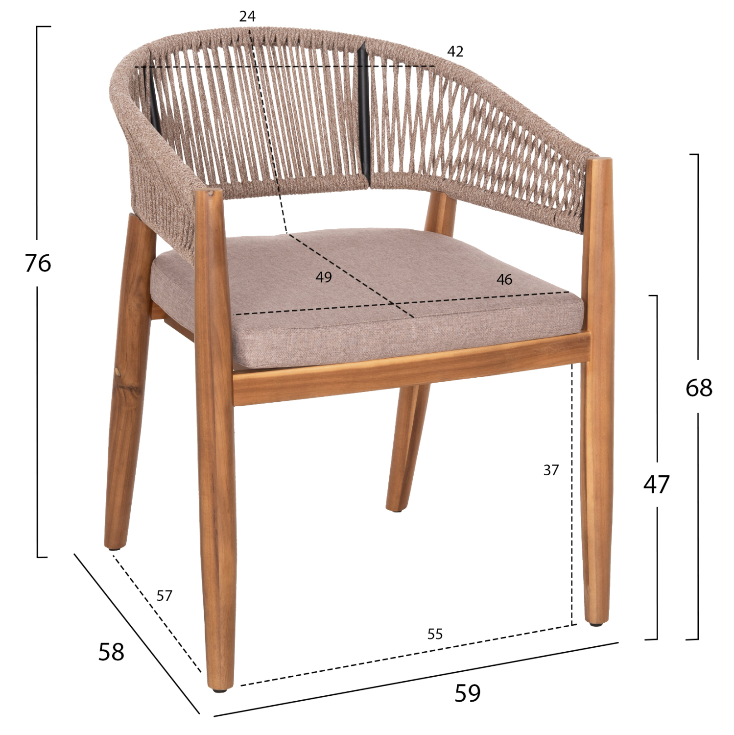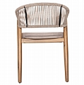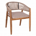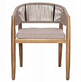 Η πολυθρόνα τραπεζαρίας εξωτερικού χώρου FB96135.02 συνδυάζει αρμονικά διαφορετικά υλικά κατασκευής. Τα πόδια είναι από ξύλο ακακίας στο ΦΥΣΙΚΟ του χρώμα, ενώ ο σκελετός της πλάτης είναι μεταλλικός με πλέξη από nylon σχοινί σε ΜΠΕΖ χρώμα. Το κάθισμα διαθέτει μαξιλάρι με πολυεστερικό ύφασμα επίσης σε ΜΠΕΖ χρώμα. Οι σχεδιαστικές γραμμές είναι κομψές και με γνώμονα την άνεση του χρήστη και θα αποτελέσει το κέντρο ενδιαφέροντος οπουδήποτε και αν τοποθετηθεί, ιδιαίτερα όμως αν συνδυαστεί με το ανάλογο τραπέζι.