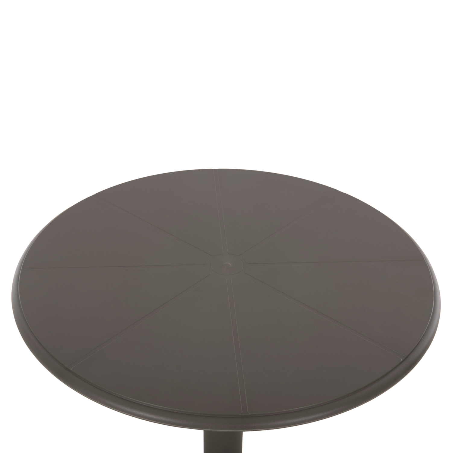 Το τραπέζι πολυπροπυλενίου FB96124.15 σε OLIVE GREEN χρώμα είναι η ιδανική πρόταση για χρήση σε εξωτερικούς χώρους, είτε επαγγελματικούς (χώροι δεξιώσεων, εταιρείες catering, κλπ.) είτε για το σπίτι. Το τραπέζι είναι στρογγυλό, ενώ η στήριξη γίνεται με μια κολώνα στο κέντρο που καταλήγει σε 4 πόδια («νύχια»).