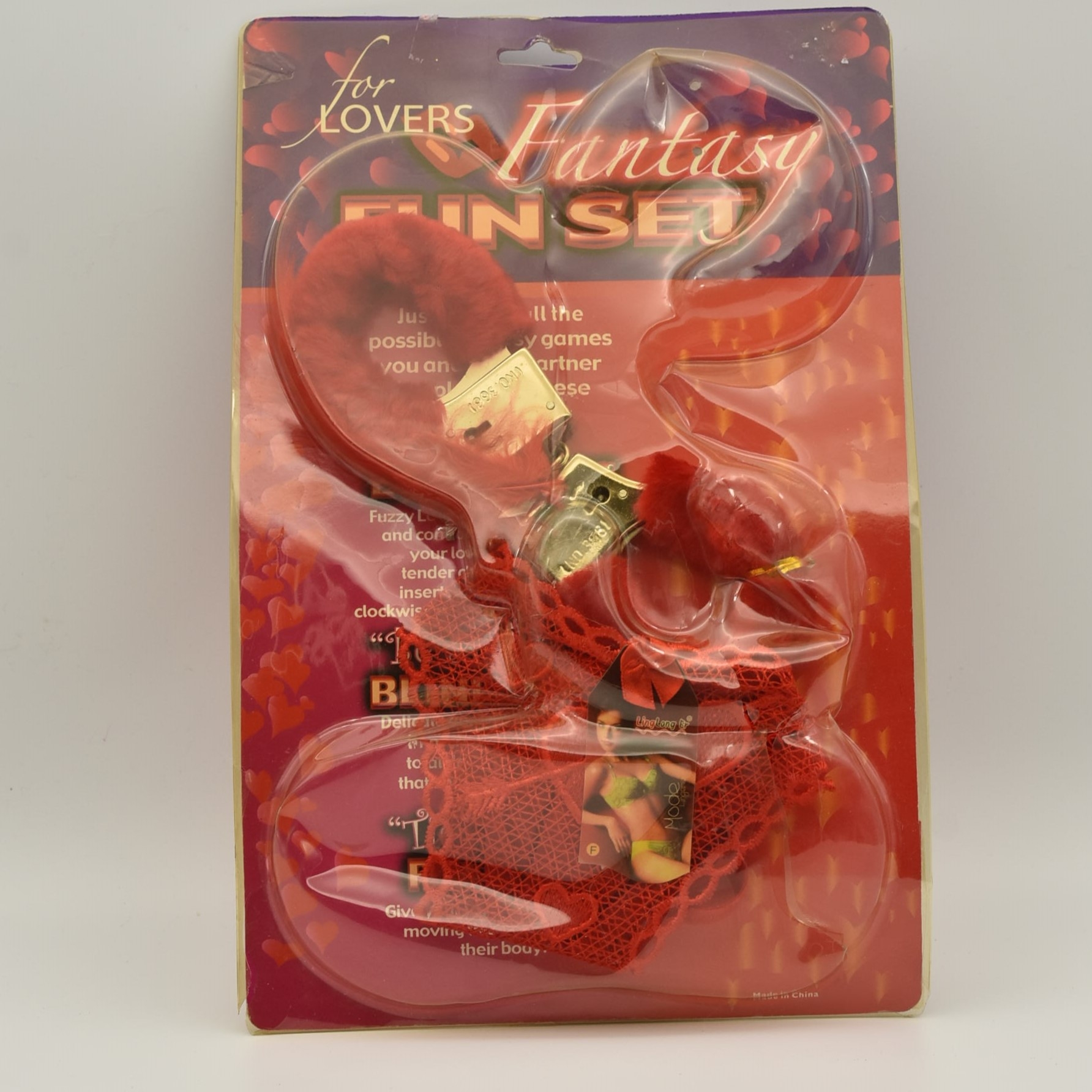 Γυναικείο κόκκινο εσώρουχο με κόκκινες γούνινες χειροπέδες