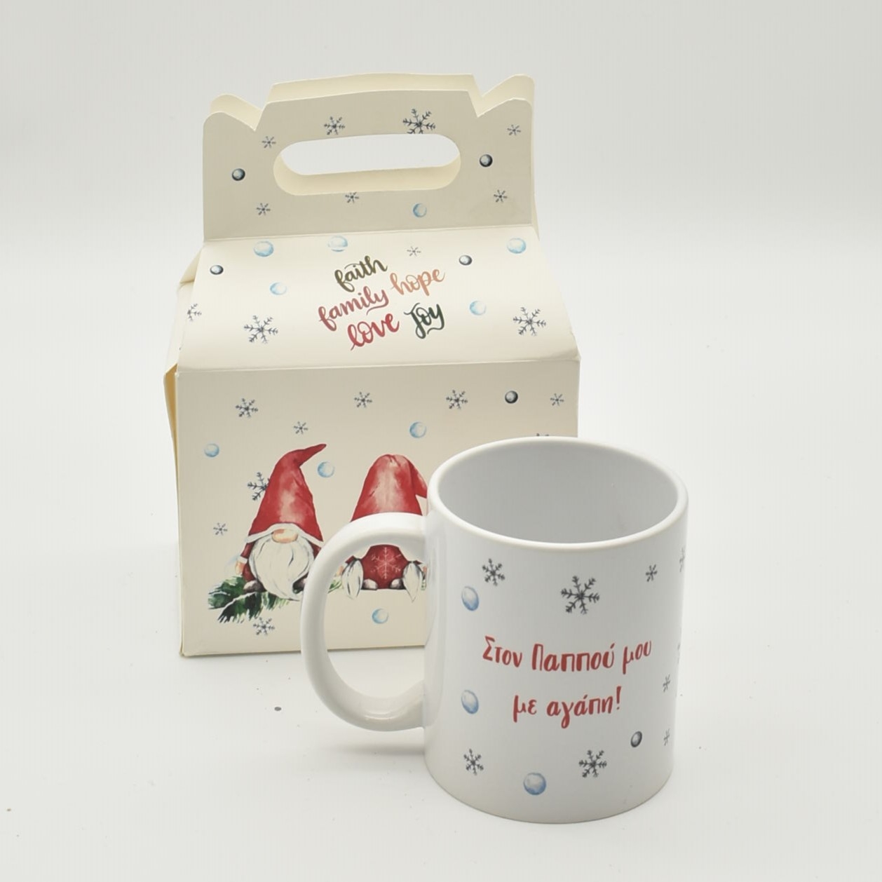 Χριστουγεννιάτικη κούπα για τον παππού με εικονιζόμενους νάνους σε συσκευασία δώρου