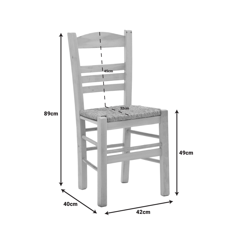 * Περιέχει ψάθα εξαιρετικής ποιότητας. Η ψάθα προσφέρει φυσική διαπνοή και άνεση στο κάθισμα, ενώ ταυτόχρονα προσθέτει ένα ιδιαίτερο στυλ στην εμφάνιση της καρέκλας. Η φυσική της παρουσία μπορεί να δημιουργήσει μια ευχάριστη αίσθηση εναρμόνισης με το φυσικό περιβάλλον, καθιστώντας την ιδανική για έναν άνετο και φιλόξενο χώρο καφενείου.