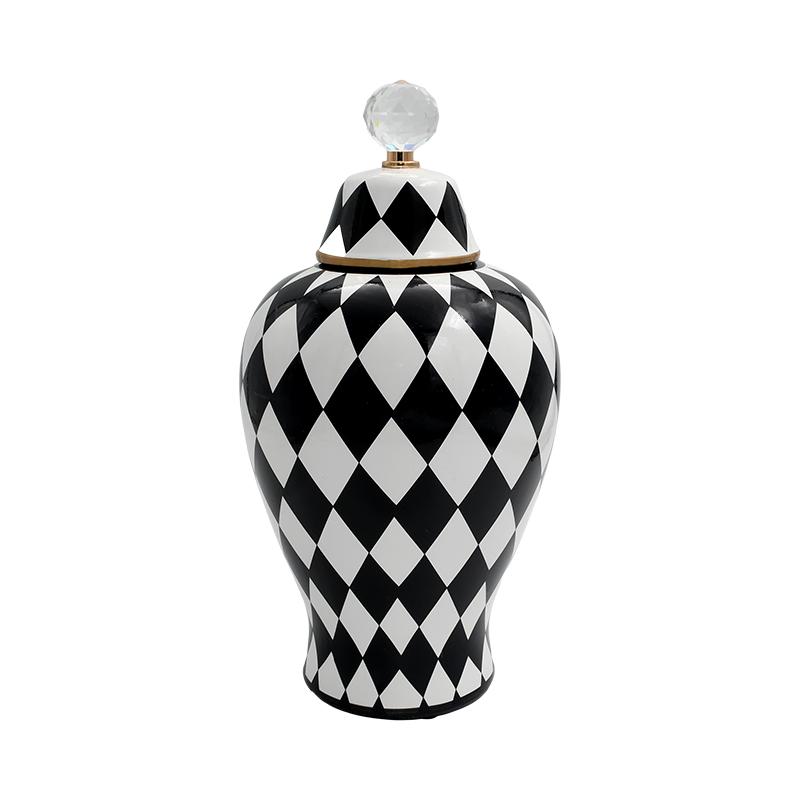 ΚΕΡΑΜΙΚΟ ΒΑΖΟ ΜΕ ΚΑΠΑΚΙ Fylliana FL4197 ΡΟΜΒΟΥΣ ΜΑΥΡΟ-ΛΕΥΚΟ ΧΡΩΜΑ 20x37εκ