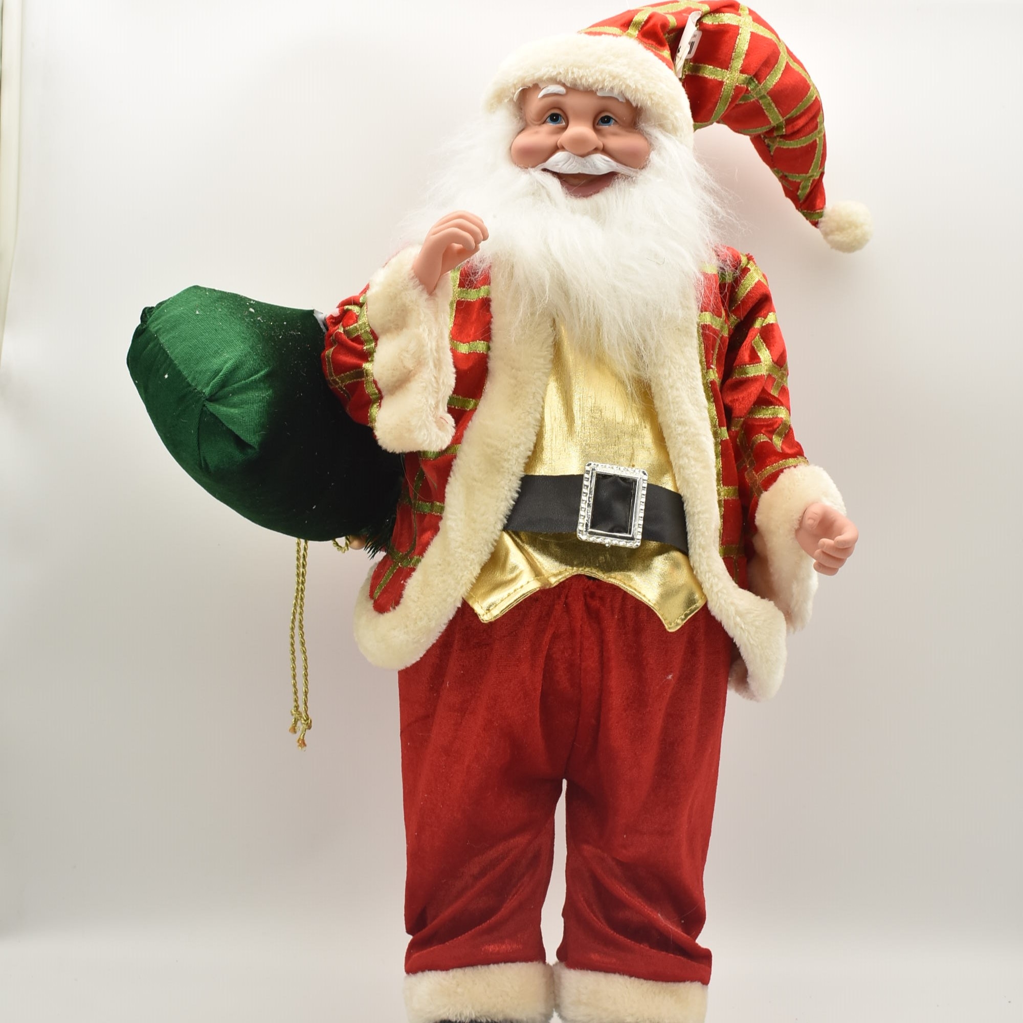 Φιγούρα Άγιος Βασίλης με κόκκινο σακάκι με λαχανί καρό και πράσινο σάκο
