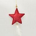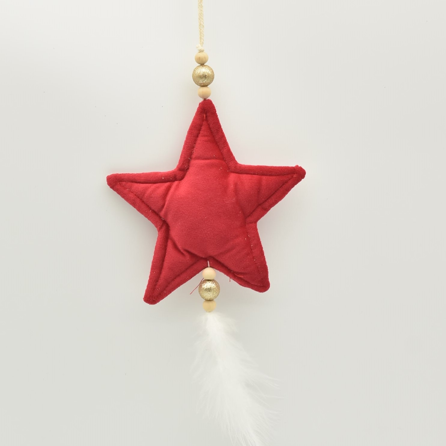 Στολίδι κρεμαστό υφασμάτινο κόκκινο αστέρι με λευκό πούπουλο στο τέλος