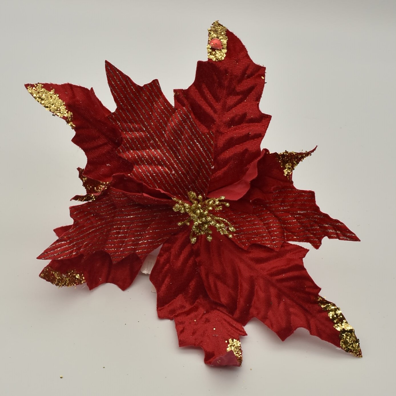 Χριστουγεννιάτικο αλεξανδρινό λουλούδι σε κόκκινο χρώμα με χρυσές λεπτομέρειες