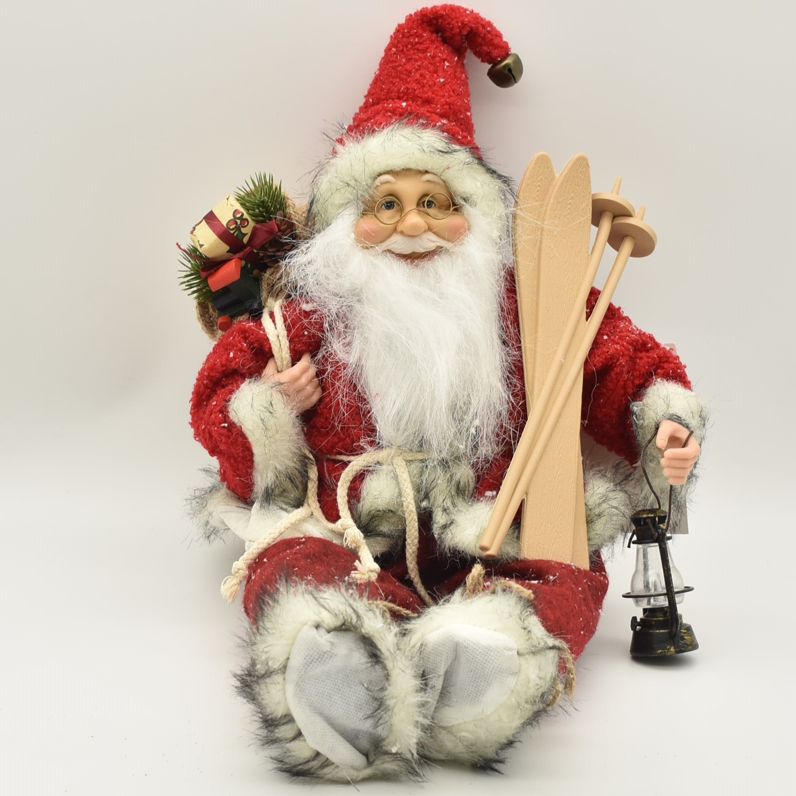 Φιγούρα αϊ Βασίλης καθιστός με παγοπέδιλα και φαναράκι
