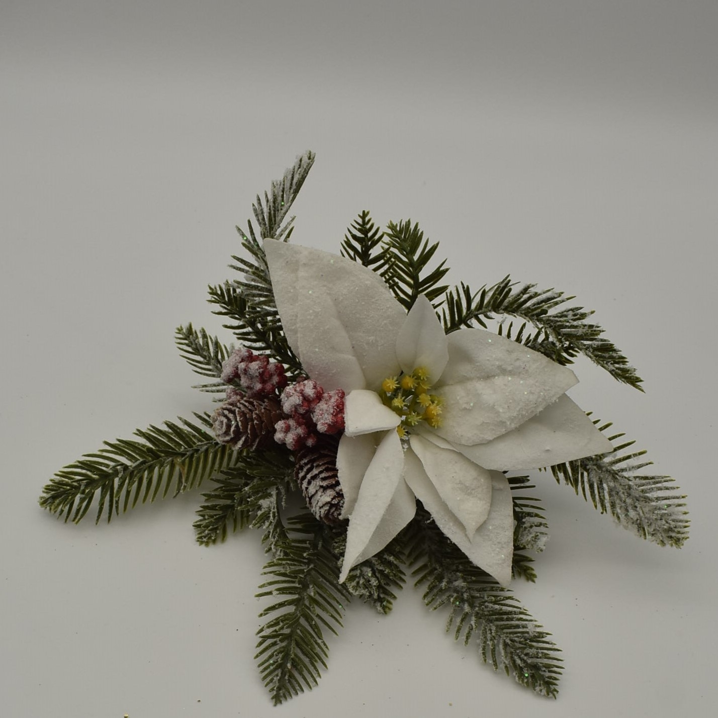 Διακοσμητικό πικ αλεξανδρινό λευκό χιονισμένο με πράσινα κλαδιά