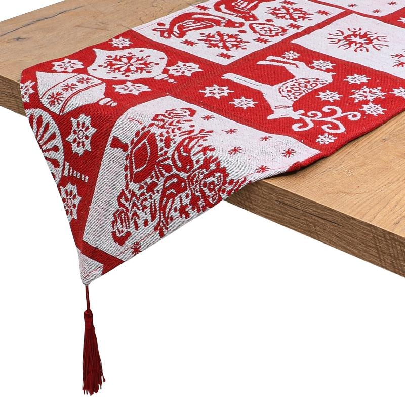 Χριστουγεννιάτικη διακοσμητική τραβέρσα σε κόκκινο - άσπρο χρώμα