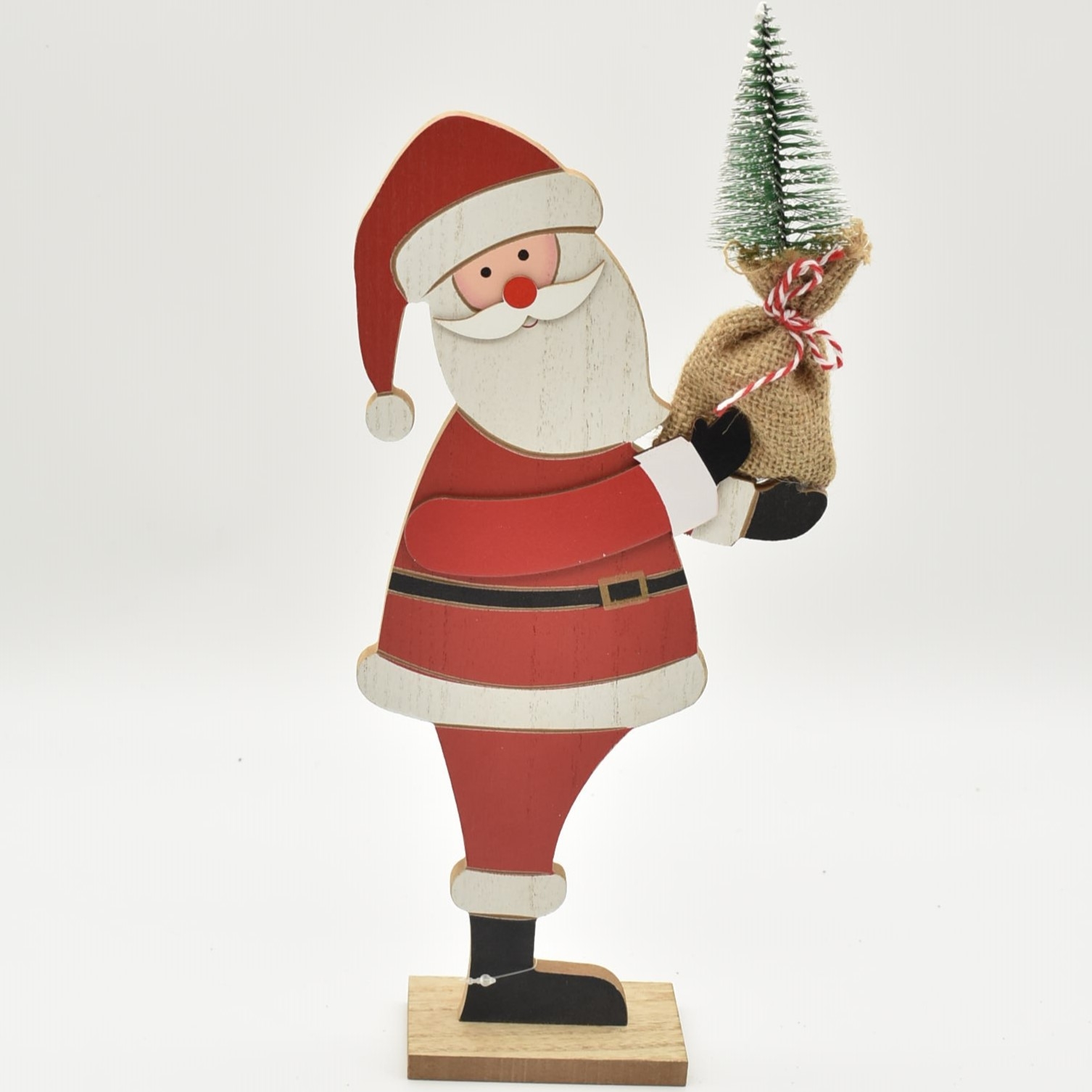 Επιτραπέζιος ξύλινος άγιος βασίλης ( κρατάει δεντράκι)