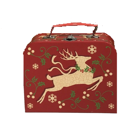 Χριστουγεννιάτικο κουτί βαλιτσάκι μπορντό με τάρανδο