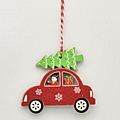 Στολίδι ξύλινο με τσόχα αυτοκινητάκι με χιονάνθρωπο και δέντρο