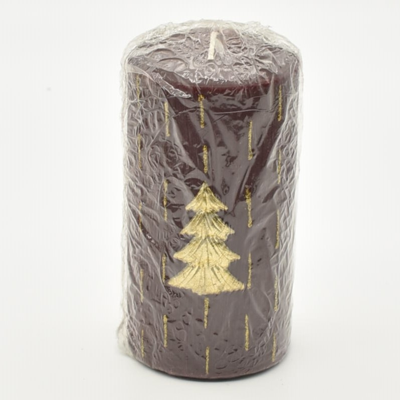Χριστουγεννιάτικο μπορντό κερί με χρυσό δεντράκι