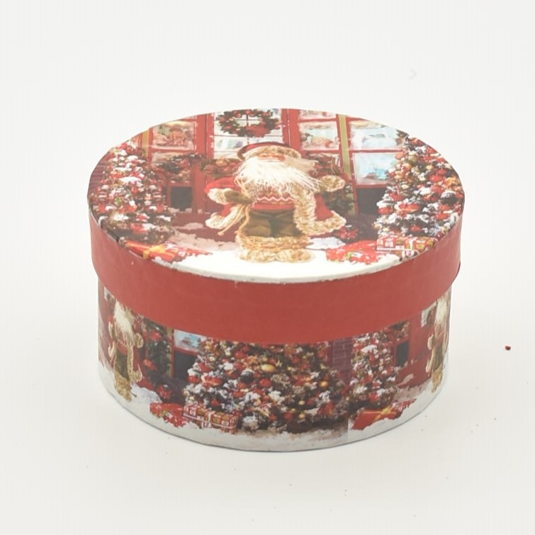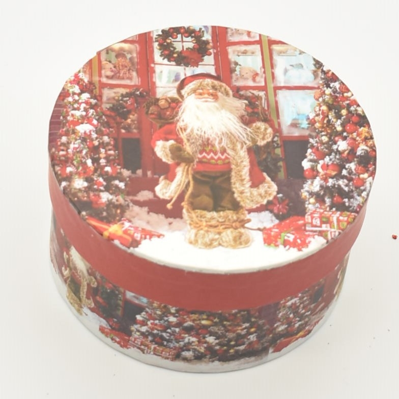Χριστουγεννιάτικο στρογγυλό κουτί με εικονιζόμενη φιγούρα άγιο βασίλη