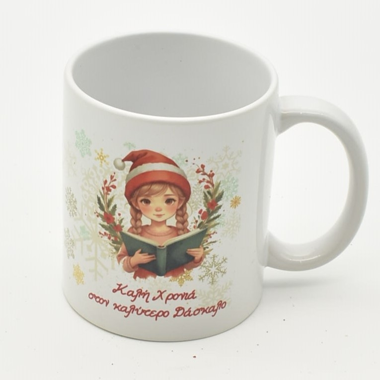 Χριστουγεννιάτικη κούπα για τον δάσκαλο με με εικονιζόμενο κοριτσάκι που λέει κάλαντα