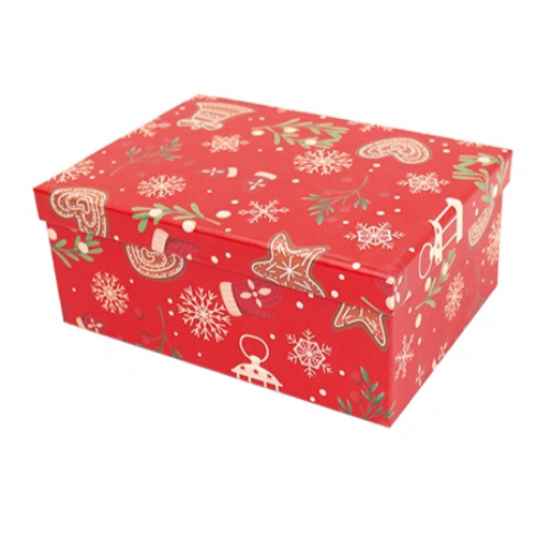 Χριστουγεννιάτικο κόκκινο κουτί με εικονιζόμενες καμπανούλες, χιονονιφάδες μπισκοτάκια